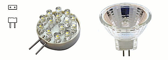 Цоколь G4 використовується в мініатюрних галогенових лампах з напругою 12В або 24В. Термін служби галогенних ламп - понад 2000 годин.