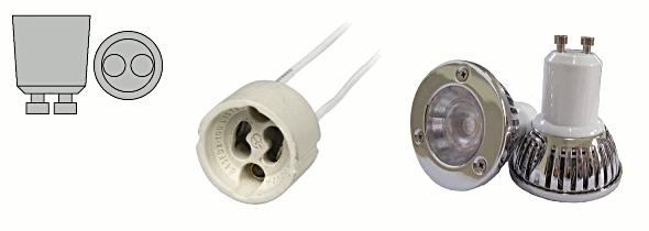 Лампи з цоколем GU10 мають потовщення на кінці контактів для поворотного з'єднання з патроном.