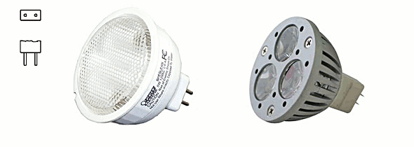 Лампи з цоколем GU5.3 (MR16) застосовують в побуті для вбудованого освітлення.