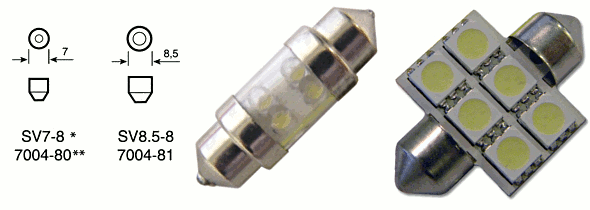 Лампи такого типу застосовують в автомобілях для освітлення номерних знаків і салонного освітлення.