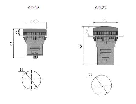 Світлодіодна сигнальна арматура серії AD-22 та AD-16 призначена для індикації наявності напруги електромережі, а також робочого стану електроустаткування.