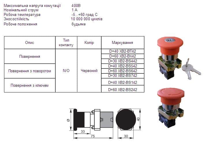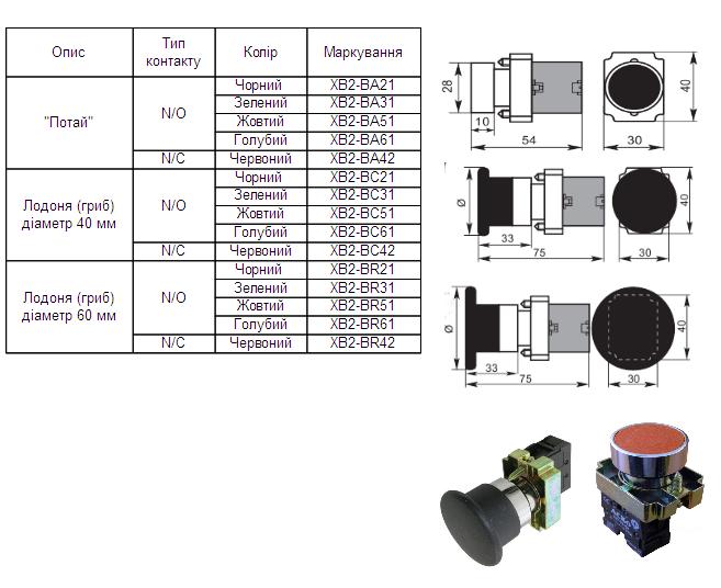 Кнопки управління серії ХВ2 призначені для установки в пультах ( шафах ) управління і сигналізації, або безпосередньо в корпусах пристроїв. Привід кнопок ХВ2 і основа виконані з металу (за винятком кнопок типів ЕН та ЕА ) . Кнопки серії ХВ2 встановлюються на панелі, в отвори діаметром 22,3 мм. Підключення монтажних проводів проводиться за допомогою гвинтових затискачів.