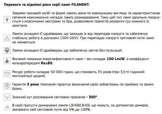 Лампи серії FILAMENT - це сучасні світлодіодні лампи класичних форм з прозорими колбами, що якнайкраще поєднуються з класичними юстрами та бра.