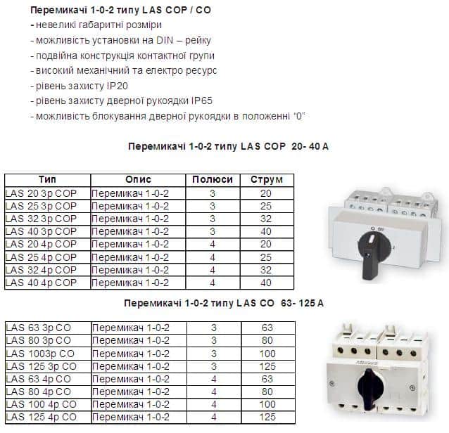 Перемикачі навантаження призначені для установки в розподільчі щитки в якості перермикача напруги з робочим струмом до 125А та для ручгного вводу резервного живлення.