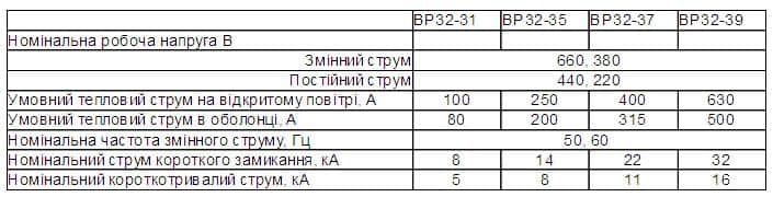 Вимикачі-роз'єднувачі ВР32 призначені для включення, пропускання і відключення змінного струму номінальною напругою до 660 В номінальної частоти 50 і 60 Гц і постійного струму номінальною напругою до 440 В в пристроях розподілу електричної енергії, а також змінного струму напругою 1140 В частоти 50 і 60 Гц без навантаження. Можуть бути перекидного типу та розривного.
